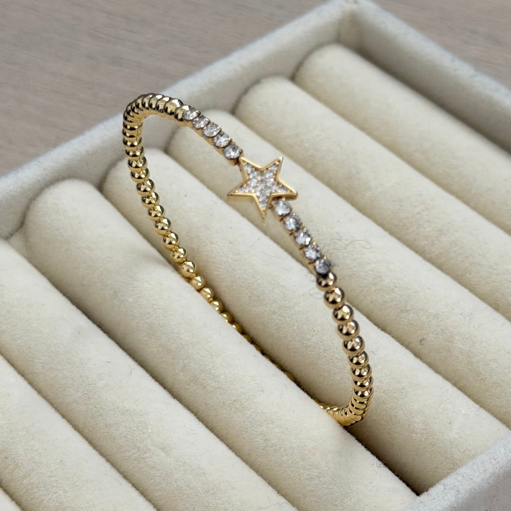 Durable and stylish, our waterproof bracelet is crafted for both functionality and fashion. Perfect for any occasion, it's the ideal accessory for those who appreciate durability and timeless elegance. Perfect for the minimalist and a beautiful piece to layer with. A true versatile statement piece that you can wear straight from the pool to dinner!
